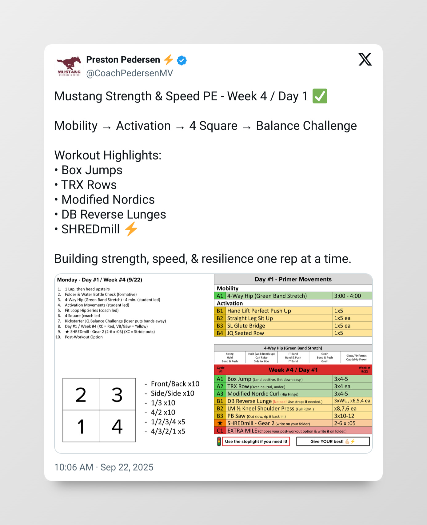 This new four-part series—A Week in the Life—takes you inside a normal week of Mustang Strength & Speed PE.