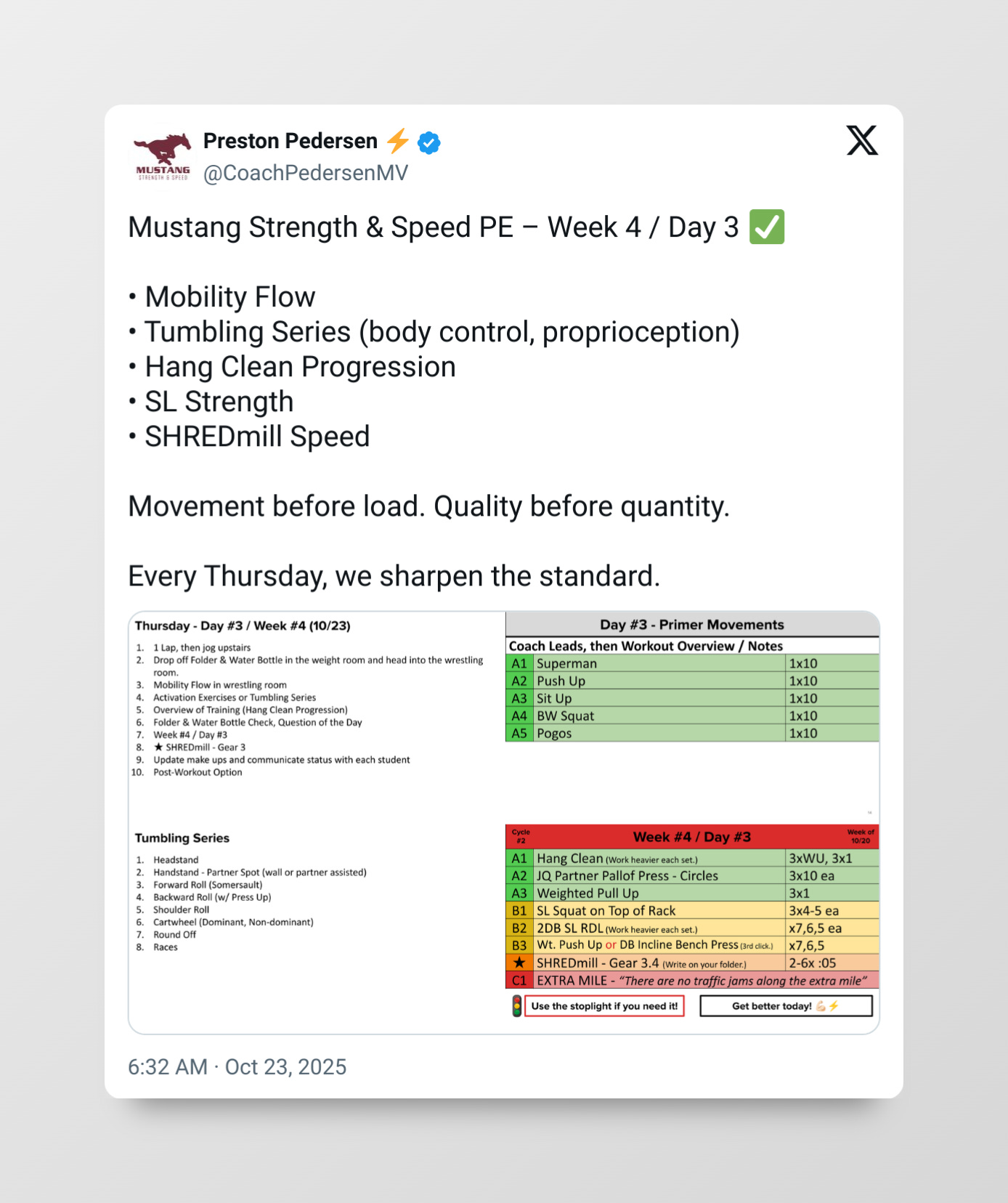 Details win Thursdays. Don’t rush the reps—own them.