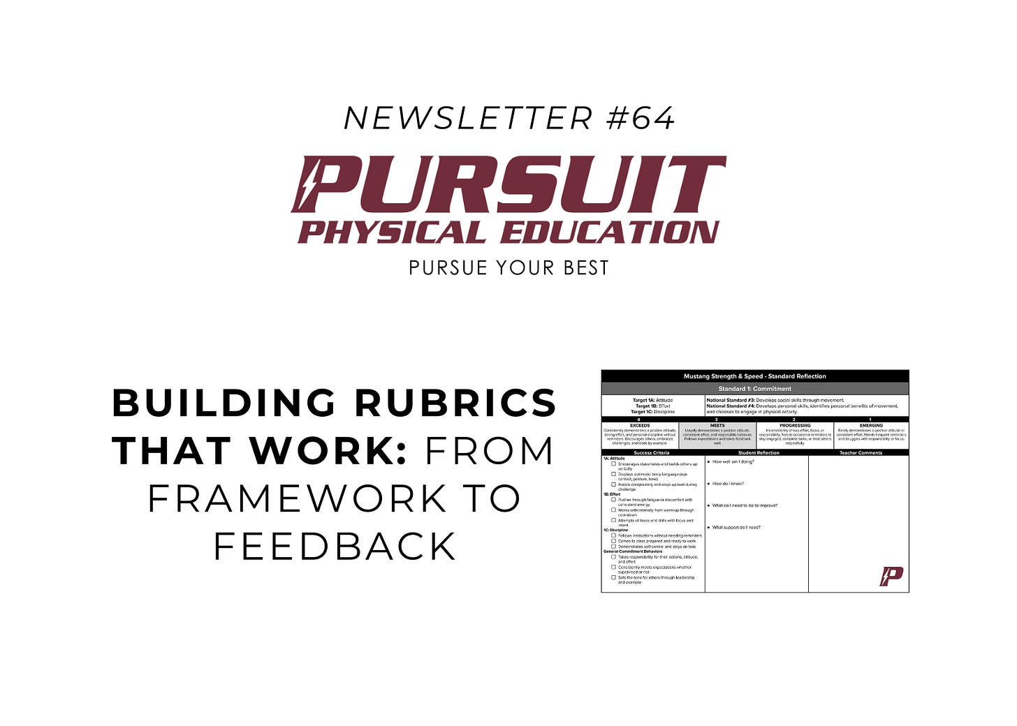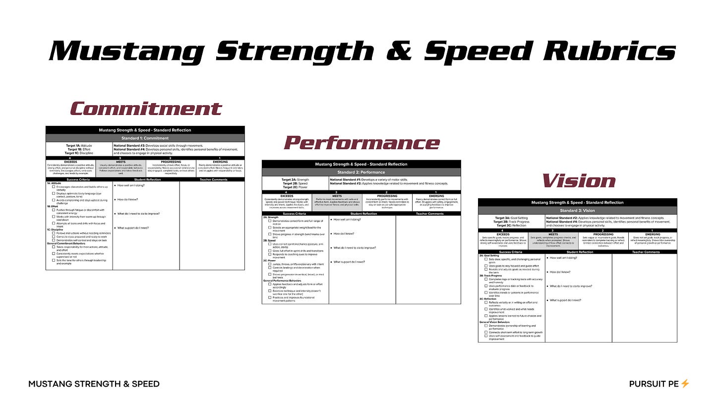 Later in this issue, I’ll share the rubric we are building for Mustang Strength & Speed, a student-facing handout you can adapt for your own program.